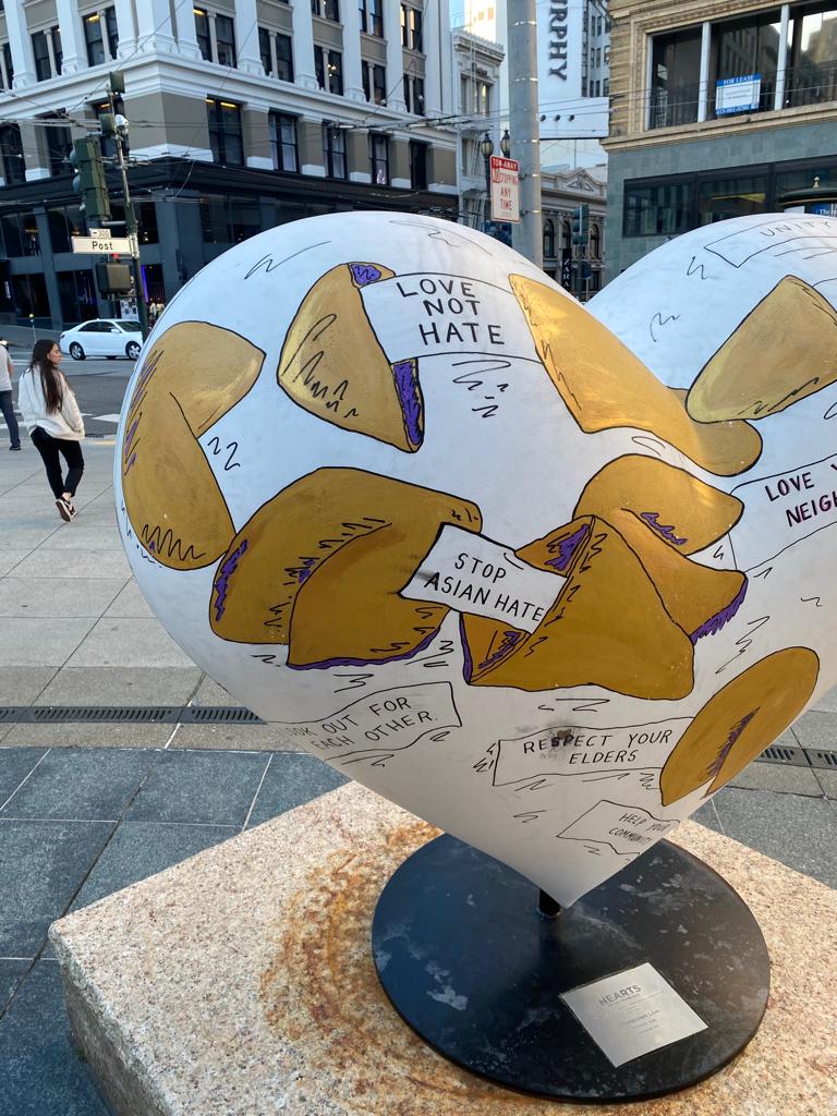 El epicentro del Downtown está ocupado por la plaza de Union Square, dónde se encuentra la columna de Dewey Monument, dedicada a un héroe de guerra. La zona debe su nombre a durante la Guerra Civil se celebraban aquí las reuniones del Ejército de la Unión, por lo que ganó su designación como Monumento Histórico de California. En esta plaza se junta un montón de gente patinando, y es donde vimos el primer corazón de la colección que Tony Bennett expone por la ciudad.