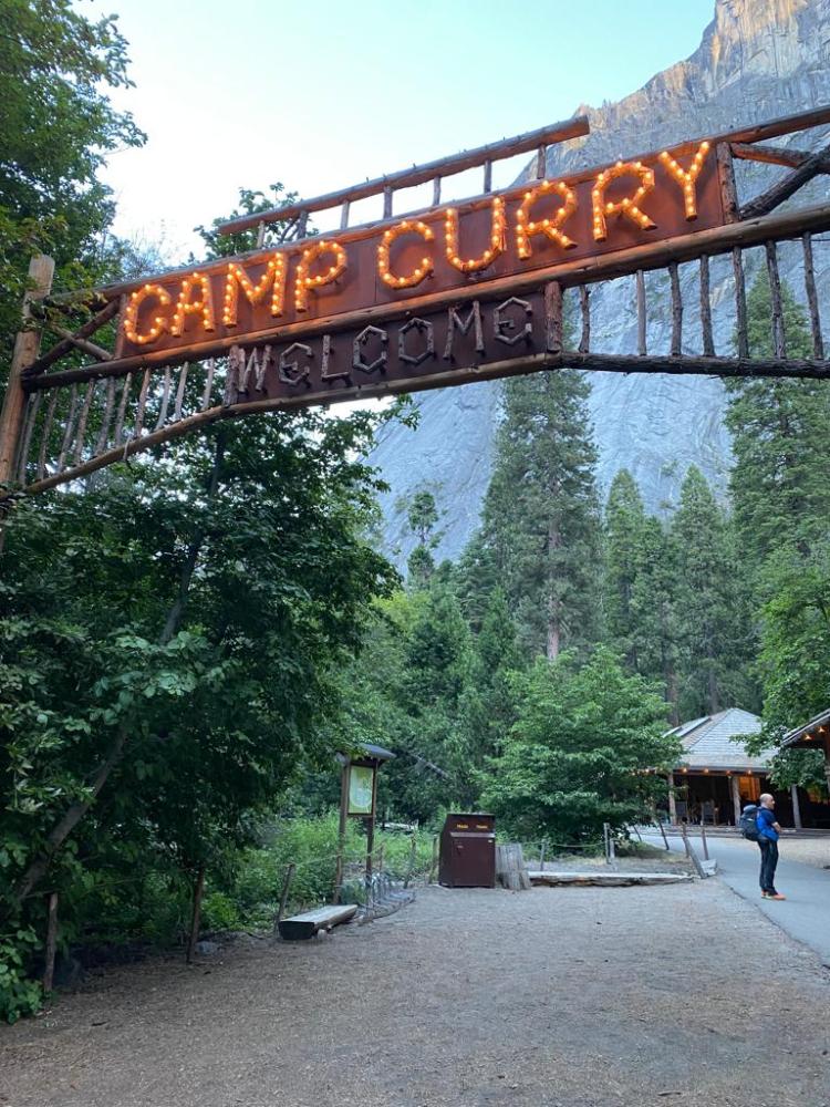 - Curry Village: desde 99$/noche aprox. Este es otro alojamiento del que ya os hemos hablado en el post del Día 5 en California, además del alojamiento que nosotros escogimos. El Curry Village cuenta con habitaciones, cabañas de madera o tiendas de lona, obviamente unas más económicas que otras. Las habitaciones se encuentran en el edificio contiguo a la recepciones y tiene todo tipo de comodidades (calefacción, baño privado, etc). Algunas de las cabañas también cuentan con baño privado, pero otras no. Por otro lado, las tiendas de lona o canvas tent no tienen baño privado, pero si camas (dependiendo de cual reserváis tendrá desde una cama doble hasta 4 camas), electricidad y calefacción (en nuestra tienda no funcionaba, lo advertimos porque nosotros viajamos en junio y por la noche hace bastante frío). Es lo más parecido a un camping, pero sin tener que cargar con sacos de dormir, la tienda, etc. Además, los baños compartidos están super bien, tienen un montón de duchas y el agua sale super calentita. El alojamiento cuenta con piscina, restaurante, supermercado, tienda de regalos, alquiler de bicis, etc. Otro punto a favor es que esta super bien ubicado en mitad del valle de Yosemite.