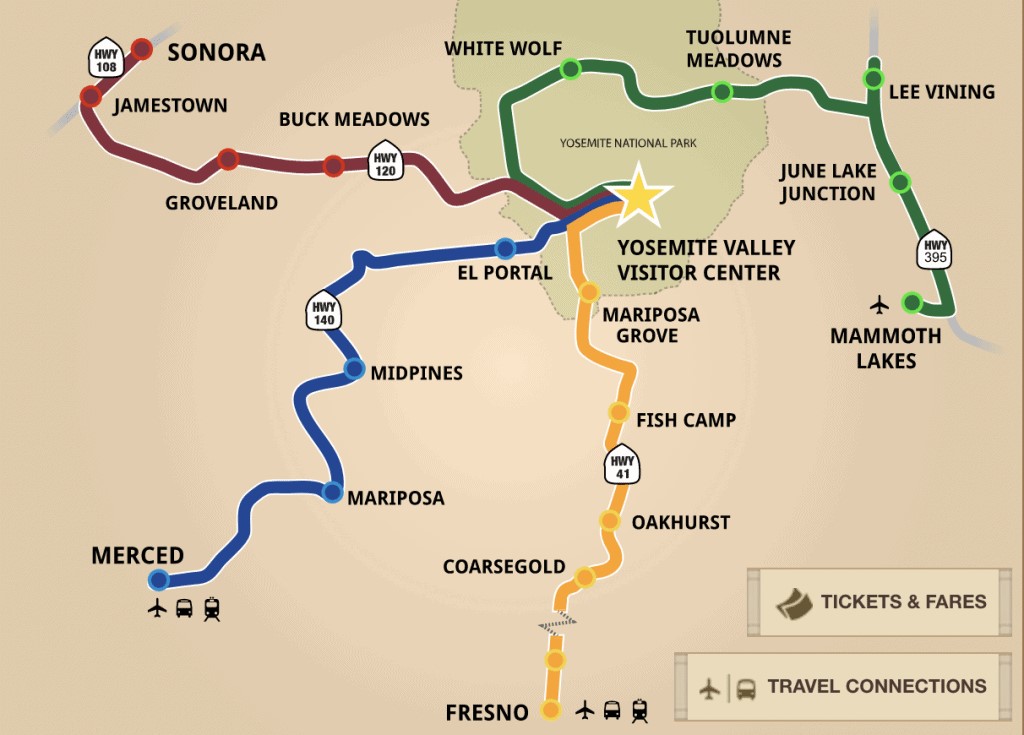 El Parque tiene varias entradas, 4 para ser exactos: 2 por el Oeste para llegar desde San Francisco o el Big Sur. Otra más por el Sur para los que vengan desde Los Ángeles o Sequoia National Park. Y la última por Tioga Pass para los que vengan del Valle de la Muerte procedentes de Las Vegas.