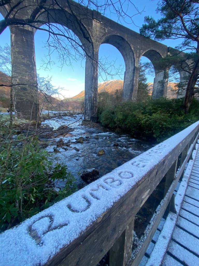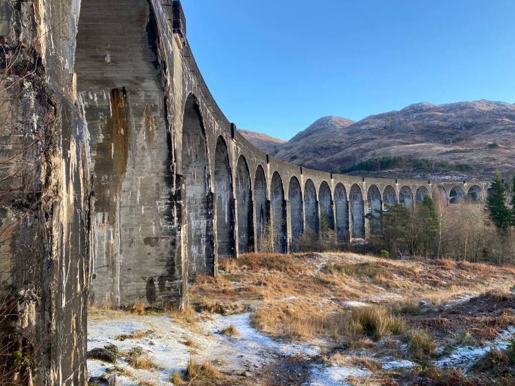 Puede y solo puede que esta fuera la parada que más ilusión nos hacía. Aunque, si bien es cierto, nos hubiera gustado ver al Jacobite echando humo por el viaducto. Este tren a vapor fue el elegido para representar al Hogwarts Express, pero en la vida real es un tren turístico que cubre la ruta entre Fort William y Mallaig. En la época en la que fuimos a Escocia (finales de diciembre) no está operativo ya que solo circula desde mediados de abril hasta octubre.