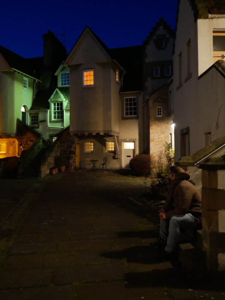 Al final de la Royal Mile, ya casi en las puertas del palacio de Holyrood se encuentra este callejón tan cuqui. Este patio circular fue en el pasado parte del palacio, más concretamente las caballerizas del mismo. Además, albergaba una posada de la cual se dice que recibe el nombre el callejón y daba sustento tanto de comida como de whisky a los viajeros.