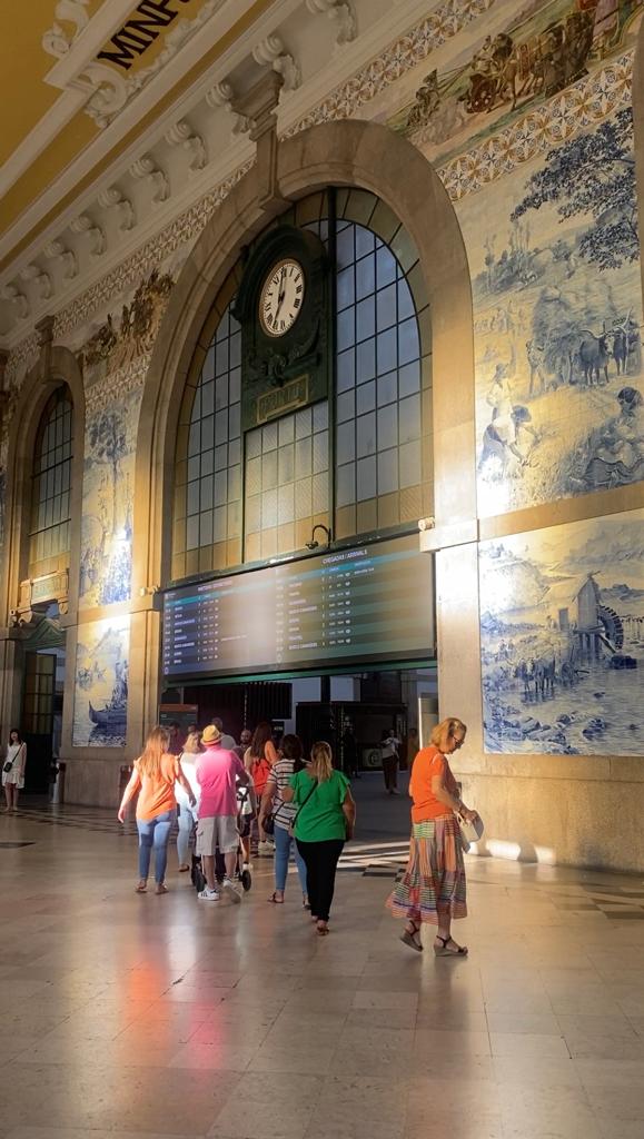 Es la estación de trenes principal del norte de Portugal. Destaca su fachada y vestíbulo de entrada decorado con más de 20.000 azulejos pintados a mano. Los murales representan acontecimientos históricos de Portugal como la Batalla de Valdevez o la jura fidelidad en Toledo de Egas Moniz (preceptor de Alfonso I de Portugal) al rey de León Alfonso VII.
