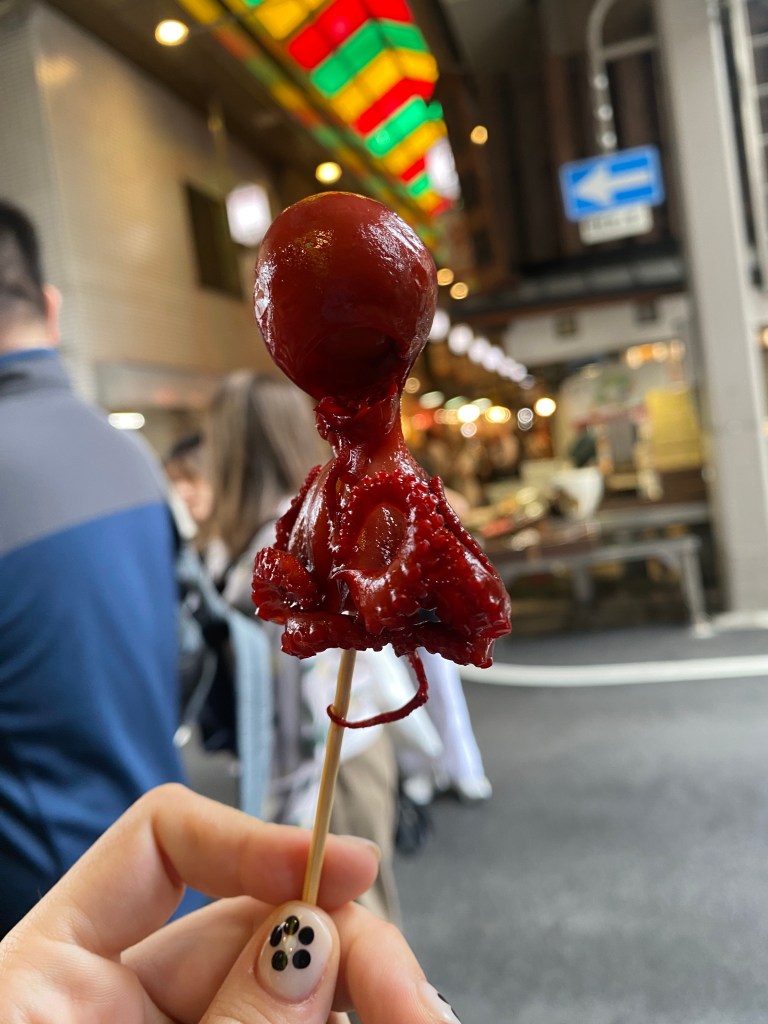 Algunas de las cosas que podemos (y debemos) probar en el mercado de Nishiki son: