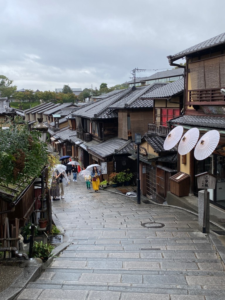 Estas dos calles son posiblemente las más famosas de todo Kyoto y regalan una postal espectacular del Japón más tradicional con sus casitas de maderas, calles empedradas y la pagoda de fondo.