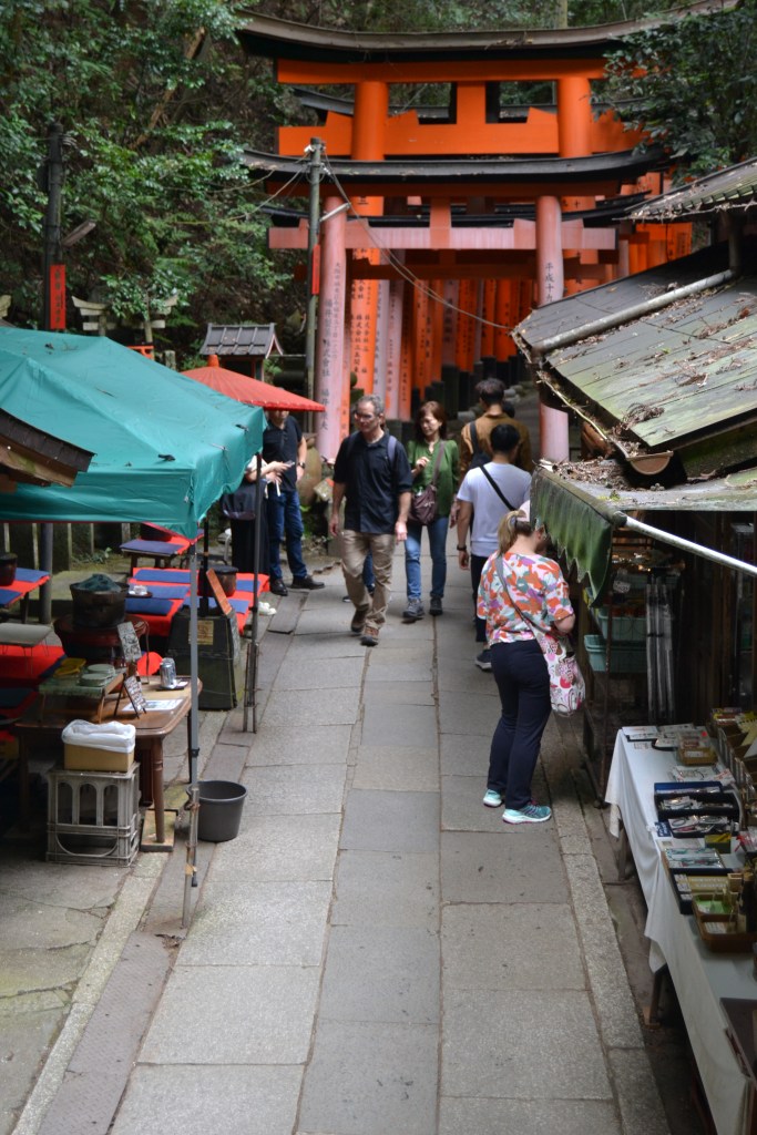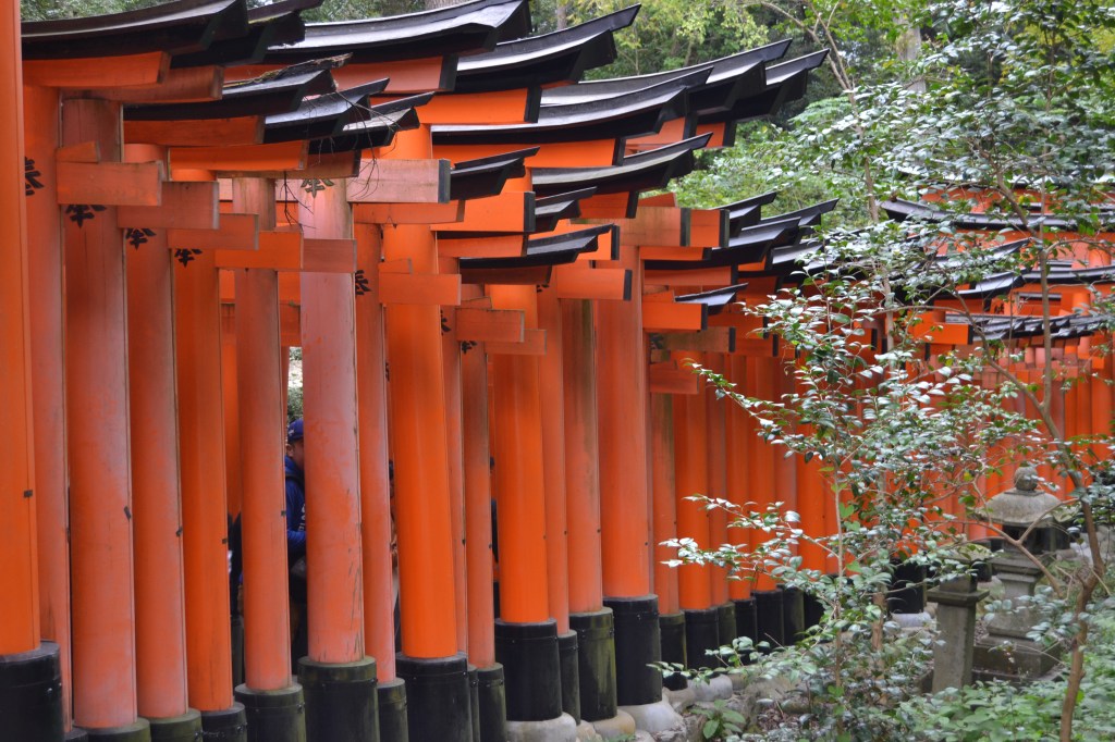 - Los 1.000 torii. Dejando atrás el salón principal nos encaminamos por el sendero de las mil puertas. Desde el periodo Edo los fieles han donado una de estas puertas para que el dios Inari les ayude con sus negocios. Su color bermellón y la espiritualidad de este lugar hacen de él algo mágico. Normalmente suele estar muy muy concurrido, especialmente en la zona más cercana al salón principal, pero según avanzas en el sendero suele estar más tranquilo. En total son 4 km de ascenso, algo pesados ya que son de subida, pero que merecerá la pena.