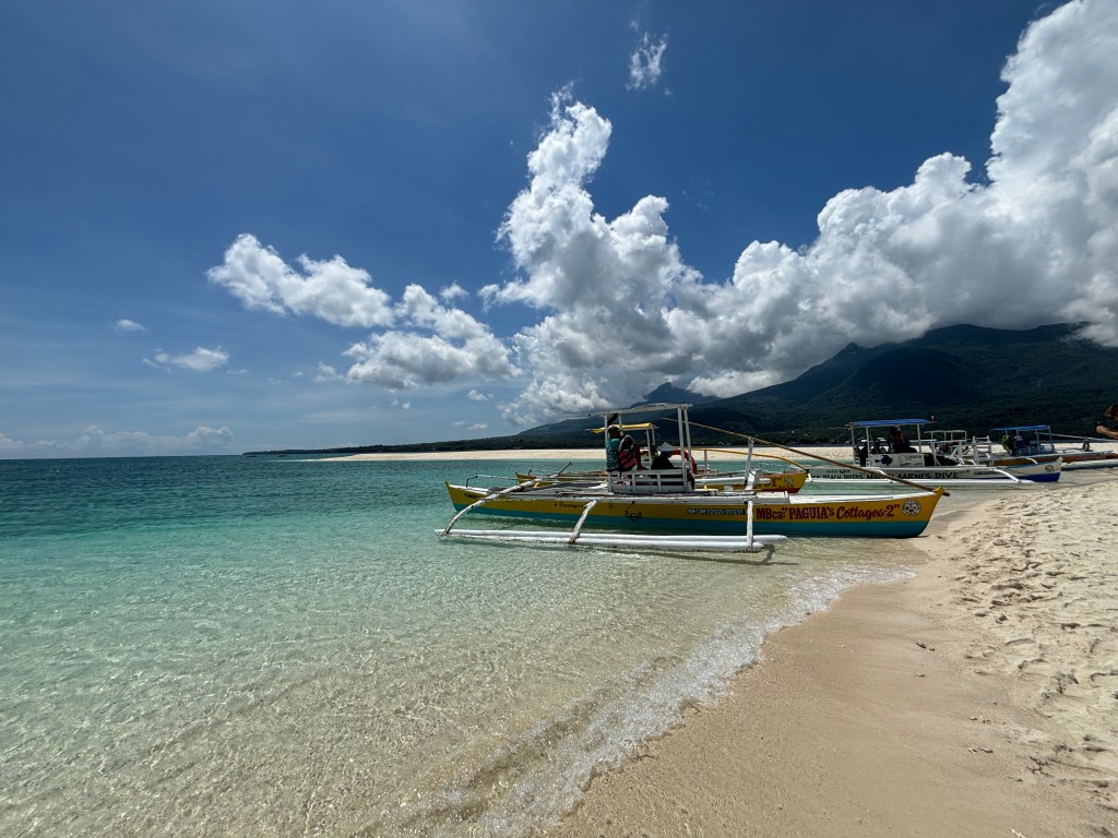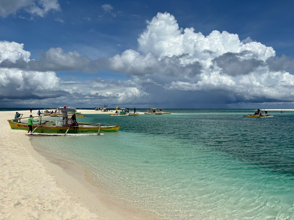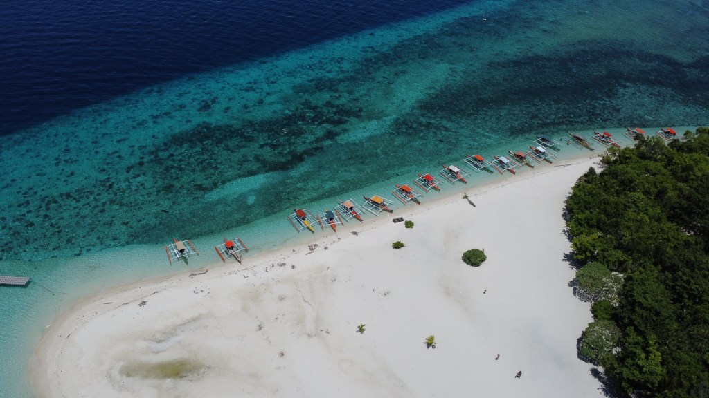 Es bastante sencillo y con una dinámica idéntica a la de Mantigue, con la única diferencia de que el puerto de salida es de White Island Ferry Terminal (en Yumbing). Una vez en el puerto tendréis que comprar los tickets para el barco en una casetilla y pagar la tasa de entrada. Lo más probable es que os pregunten si necesitáis mascara de snorkel y una sombrilla, la cual os recomendados porque en White Beach pega el sol de lo lindo. Los barcos son para un máximo de 4 personas y tardan unos 10 minutos más o menos en llegar hasta el banco de arena.