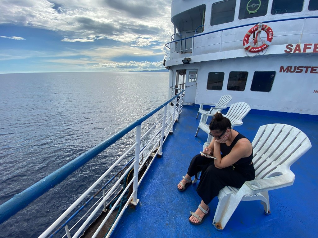 Este ferry es bastante curioso ya que no tiene asientos, si no camas, tanto interiores como exteriores. Los dos pisos del ferry esta llenos de literas donde podrás echar una cabezada, si no te apetece pasar todo el viaje tumbado puedes salir a la terraza del barco donde hay una sillas bastante cómodas y podrás disfrutar de unas bonitas vistas.