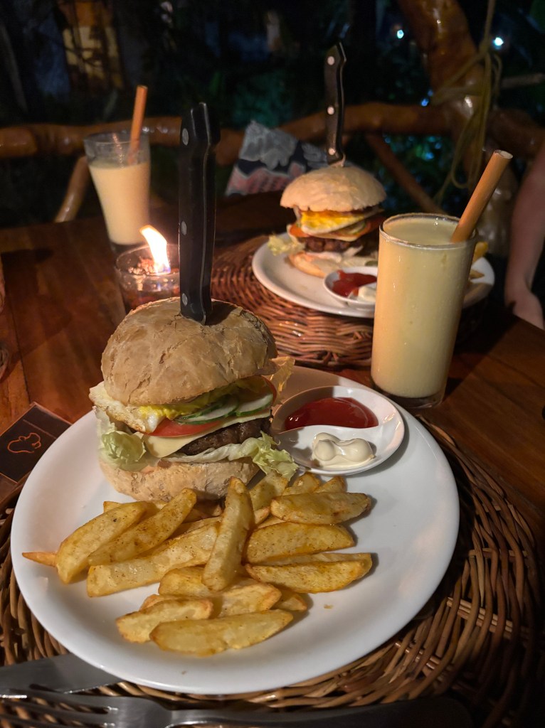 - Camiguin Volcan Beach Eco Retreat & Dive Resort: nuestro alojamiento también tenía restaurante y cenamos un par de días allí. Comida tanto filipina como occidental a buen precio. Sin duda uno de nuestros mango shake favoritos del país fue el que preparaban aquí.