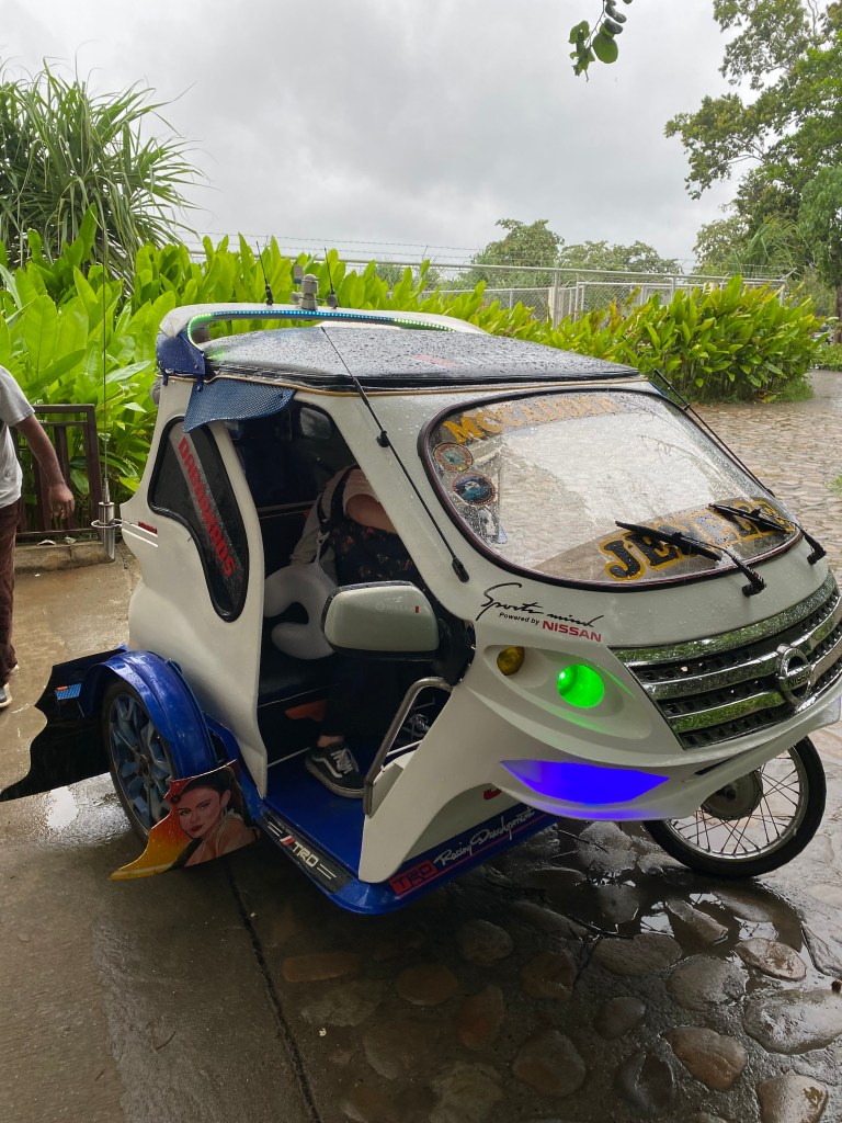- Tuktuk o tricycles. Los tuktuk o tricycles son motos a las que se les construye una estructura que permite llevar pasajeros (2, 3 o incluso 4) y que son uno de los transportes más comunes en Filipinas. Esta opción es perfecta si con la moto no te sientes muy seguro, ya que puedes acordar con un conductor de tuktuk una tarifa para un día completo o varios días con las paradas que queráis. Nosotros recurrimos a esta opción en El Nido, un día que llovía bastante y preferimos ir algo más «cubiertos».