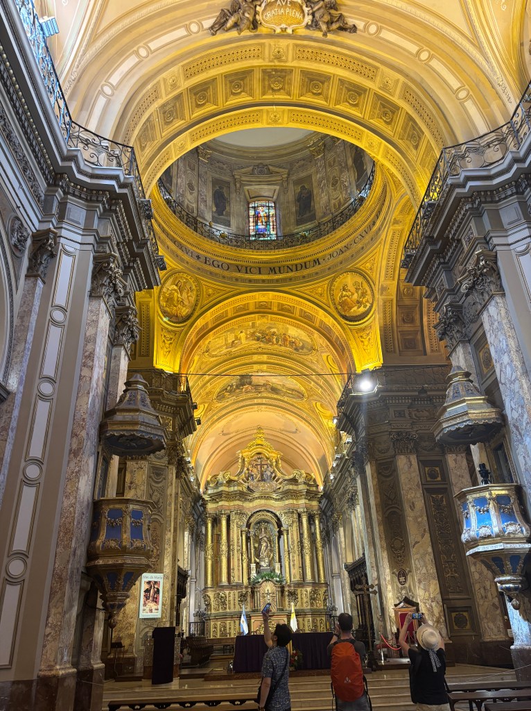 Fue todo una sorpresa porque su fachada exterior parece más un templo griego que una catedral católica, diseñada basándose en el Palacio Borbón de París destacan las doce columnas que representan los doce apóstoles. En sus interior hay un pequeño museo del Papa Francisco y un mausoleo con los resto del General San Martín, una figura clave en la independencia de Perú, Argentina y Chile.