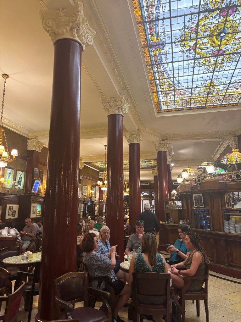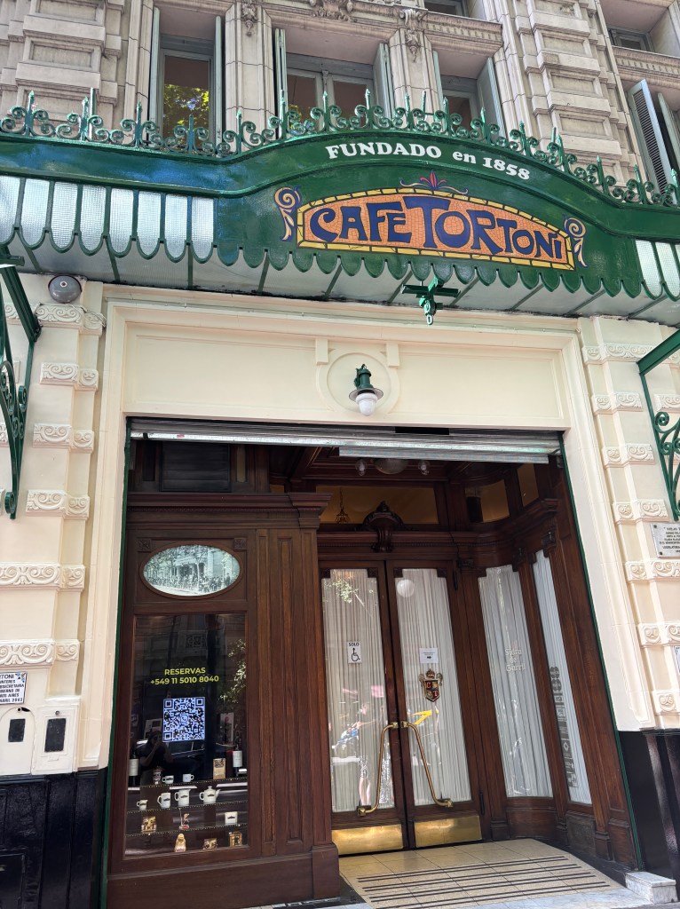 Otro imprescindible es el café Tortoni, catalogado como el café más antiguo de Buenos Aires (fundado en 1858, aunque en otro local) y uno de los centros culturales más representativos de la literatura y el arte argentino. Aquí se fundo La Peña Tortoni en 192 con el fin de crear un club donde pudieran vincularse los artistas y las personas afines al arte, para ello se acondicionó la bodega el Café, donde a partir de entonces se reunirían personalidades tan ilustres como Alfonsina Storni o Jorge Luis Borges. A nosotros personalmente nos recordó mucho al Café Novelty de nuestra querida Salamanca.