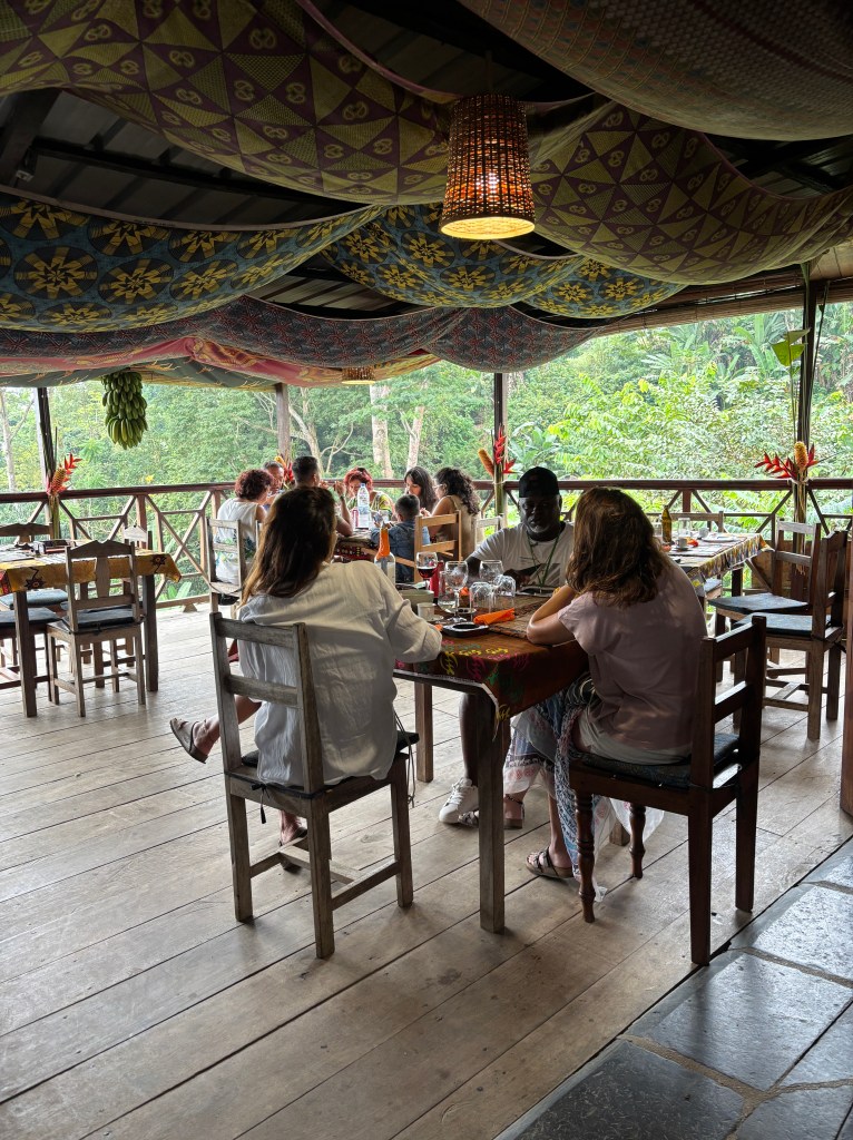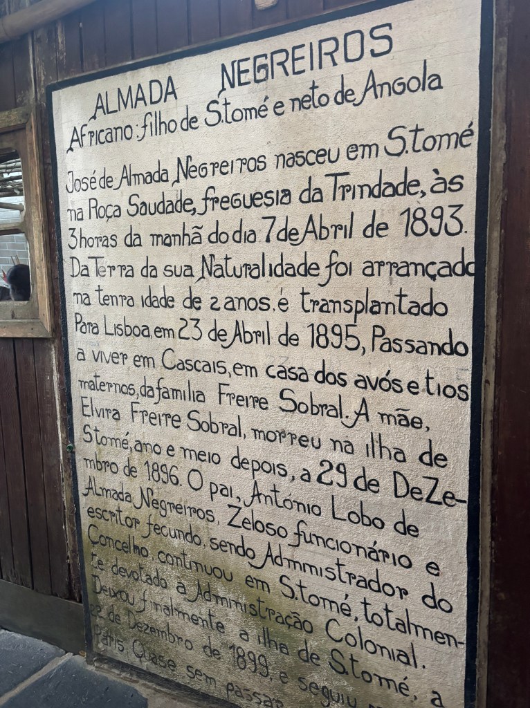 Está antigua casa colonial propiedad de la familia Almada Negreiros (José Sobral de Almada y Negreiros fue un pintor, poeta, dramaturgo, actor, bailarín y escritor portugués que nació en Santo Tomé y Príncipe en 1893 cuando este era una colonia de Portugal) ha sido restaurada y convertida en museo, pero además ofrece la posibilidad de probar un menú degustación de comida tradicional por unos 22,50€. Sin duda, fue nuestro restaurante favorito de toda la isla, la comida estaba deliciosa y el trato fue de 10.