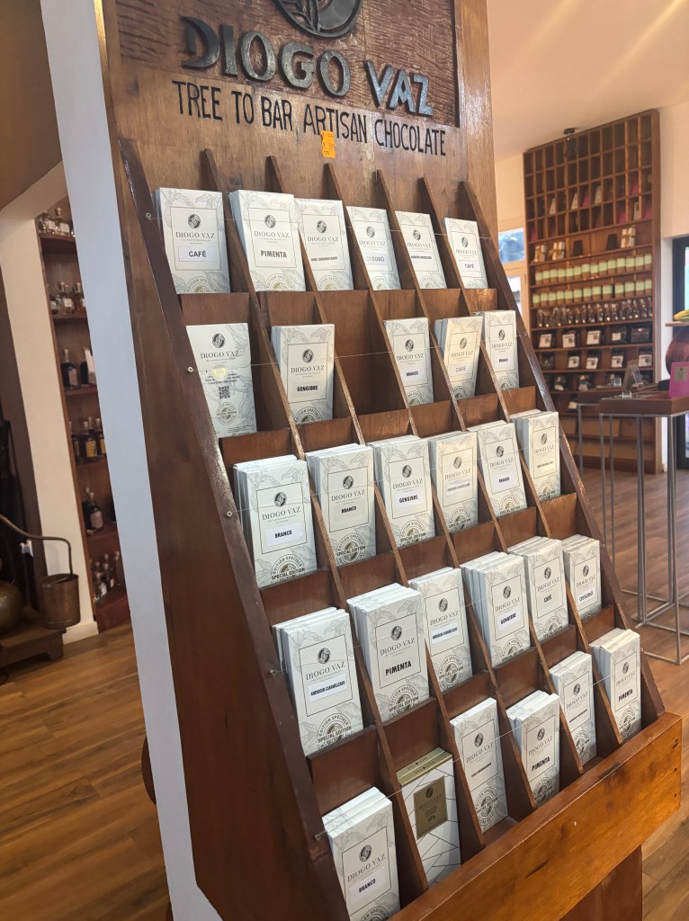 El principal producto de Santo Tomé es el cacao, por lo que irse de allí sin probarlo es un delito. Para hacer una cata y comprar un buen cacao hay dos opciones en la capital: Claudio Corallo y Diogo Vaz. Ambas tiendas están bastante cerca, pero nosotros optamos por Diogo Vaz, ya que la Roça donde se produce el cacao es una de las más famosas de la isla. Hay un monton de tipos chocolate con diferente intensidades de cacao, así como dulces elaborados con esta delicia. El local es muy cuqui y tienen una terracita perfecta para degustar el chocolate.