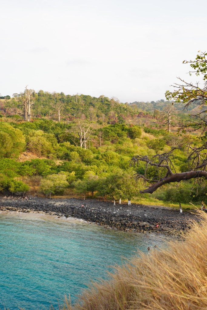 Muy cerca de la capital está este pequeño poblado de pescadores, el mejor día para visitarlo es el domingo, puesto que se celebra un mercado y así se puede disfrutar de los puestos de pescado fresco a la barbacoa. Nosotras fuimos hasta la Praia da Micolo que tiene unas bonitas vistas al Islote de Cabras, pero es cierto que los alrededores de la playas estaban muy muy sucios.
