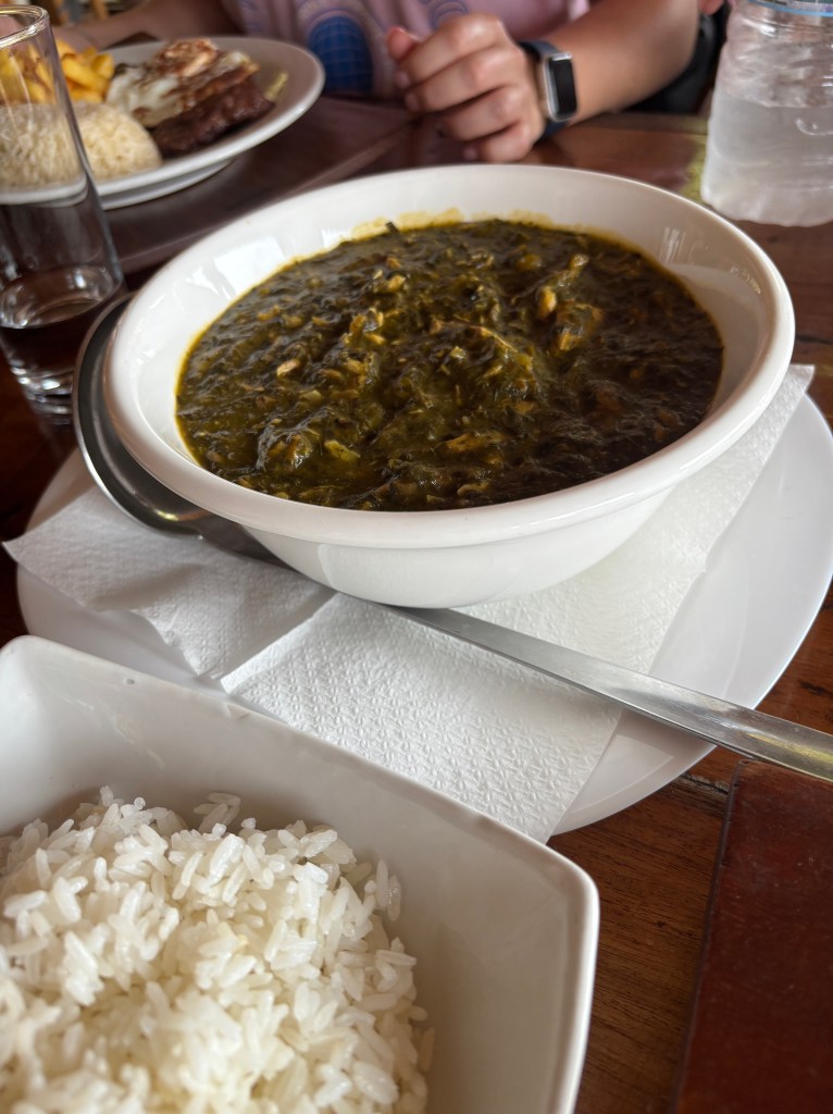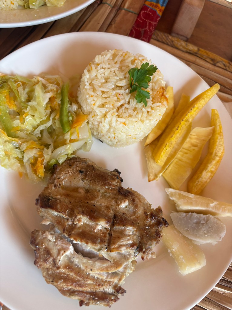 - Mucumbli. Fue nuestro alojamiento en el norte y tambien uno de los restaurantes más concurridos de Neves. Tienen una carta bastante amplia con platos más europeos o otros tradicionales como Calulu. Sus precios esta orientados a los turistas, pero merece mucho la pena.